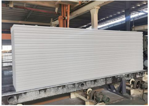 我司生產基地設有一條專業生產 ALC(蒸壓加氣混凝土板)的全自動化生產線,八條高溫蒸壓釜,在將原材料研磨-攪拌-澆注-將鋼筋網籠放到模具里-靜養3小時-脫模切割-升溫、恒溫、降溫共14小時的精細工藝流程后,生產出來的墻板在耐久性、抗凍性、抗滲性方面表現很好。