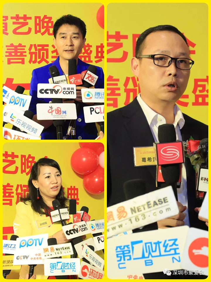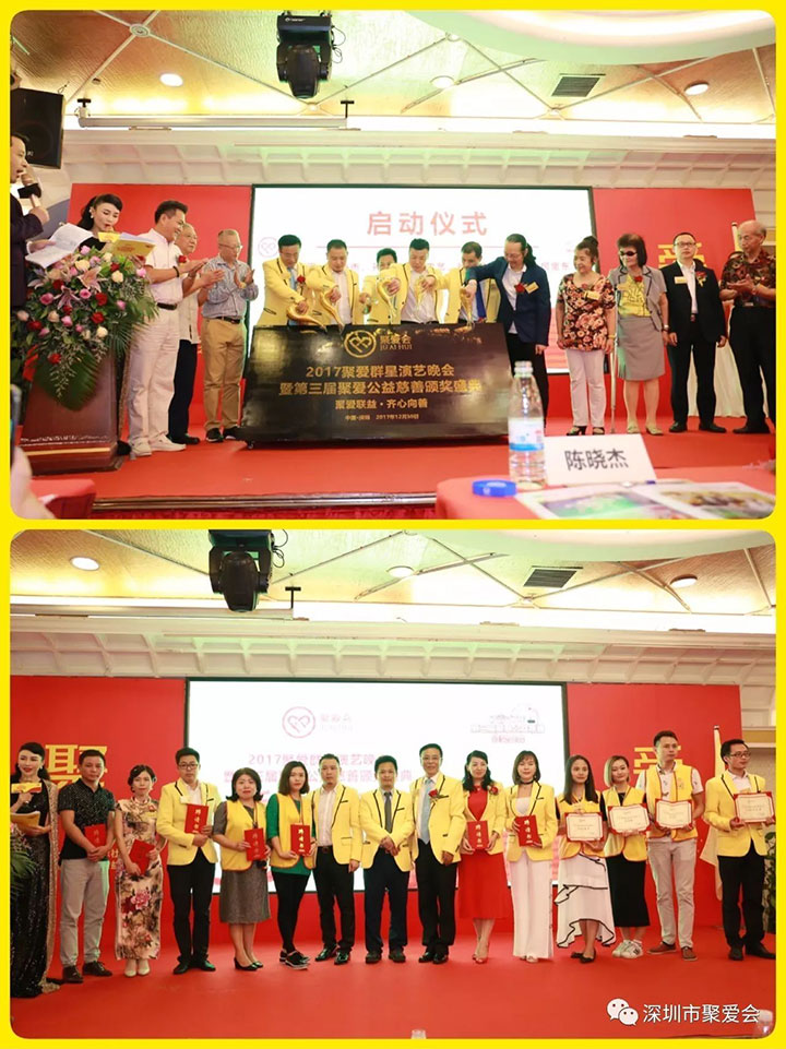 2017年9月30日,2017聚愛群星演藝晚會暨第三屆聚愛公益慈善頒獎盛典新聞發布會在深圳龍泉酒店隆重舉行。深圳市聚愛愛心促進會(以下簡稱“聚愛會”)總會會長陳曉杰、深圳市慈善會副秘書長董昕、深圳市義工聯代表汪克非,資深慈善家、愛心媽媽陳觀玉,深圳獅子會理事、分區主席王道明,聚愛會總會監事長陳志藝、總會執行會長孫錦平、顧問委員會主席張紅象以及來自聚愛會理事會及會員、深圳獅子會多支服務隊獅友、廣東商界、商會等社會愛心人士,以及來自深港廣等地的知名表演藝術家、演藝界人士:蔡印時、李進、李雄、李偉、帝娜、SKY、飛翔、彥華、易丹丹、藝濤、曹藝馨、汪潤田、歐陽成龍、飛翔、部落組合沙瑪、陳月瓊等共計200多位嘉賓共同參與了本次新聞發布會。發布會由著名愛心藝人王梓蘅、于卉怡主持。